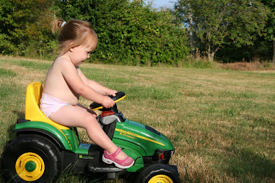 Hey guys! I'm over here! Hot nude chick on a tractor! I need my princess tiara to go with this ultracool tractor! Pull over! Watch out! Go go go! Silly Mommy and Daddy are controlling me with a remote! Why can't they cut the strings! This is my super cool digger that Nana got me for my birthday. I was too scared to ride it until Eloise came over. Then I got this OVERWHELMING urge to ride it. Mommy said I was "showing off". I'm not sure if that's a good thing or bad thing.
